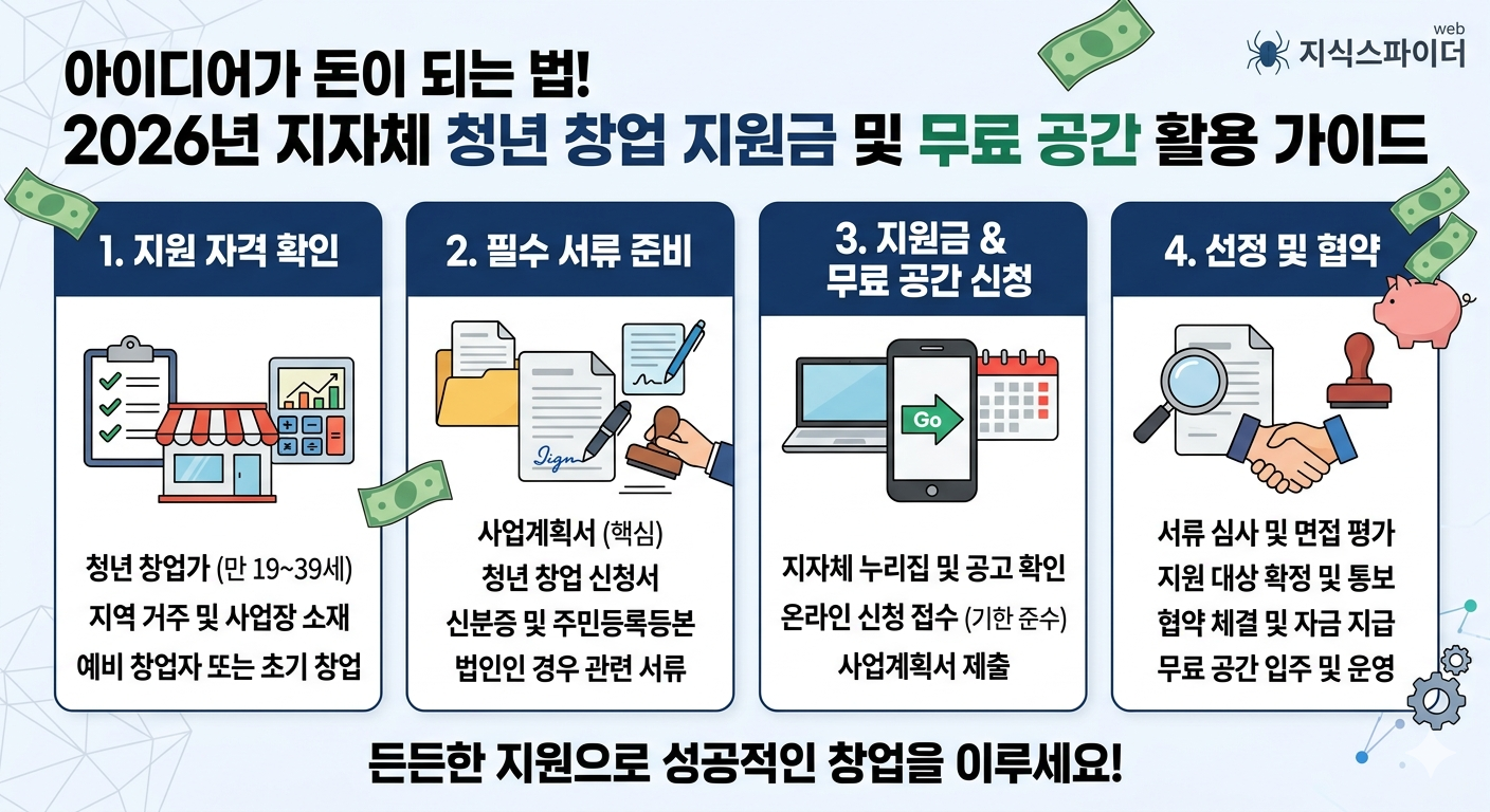 오늘 정리해 드린 2026년 지자체별 청년 창업 지원 정보가 여러분의 시작에 든든한 등대가 되길 바랍니다. 평택에서, 그리고 전국 각지에서 자신의 꿈을 일구어가는 청년 창업자 여러분을 지식스파이더가 진심으로 응원합니다. 구체적인 신청 방법이나 서류 작성이 막막하시다면 댓글 남겨주세요. 제가 경험한 팁들을 아낌없이 나누어 드릴게요!
